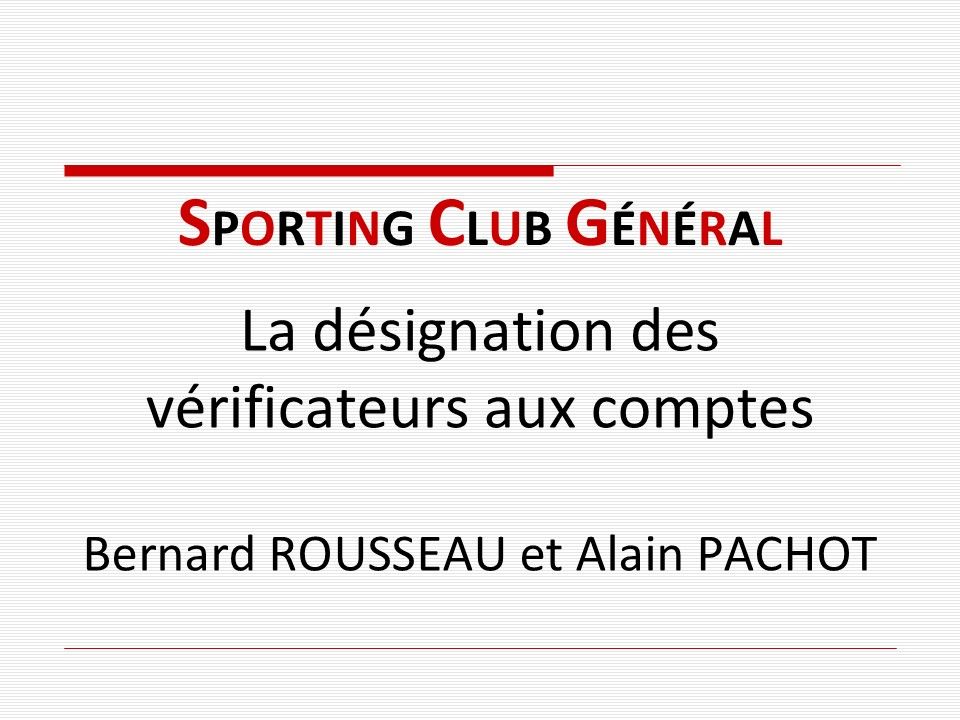 - M. Alain PACHOT et M. Bernard ROUSSEAU sont désignés comme vérificateurs aux comptes de l'association, cette résolution est adoptée à l'unanimité,
