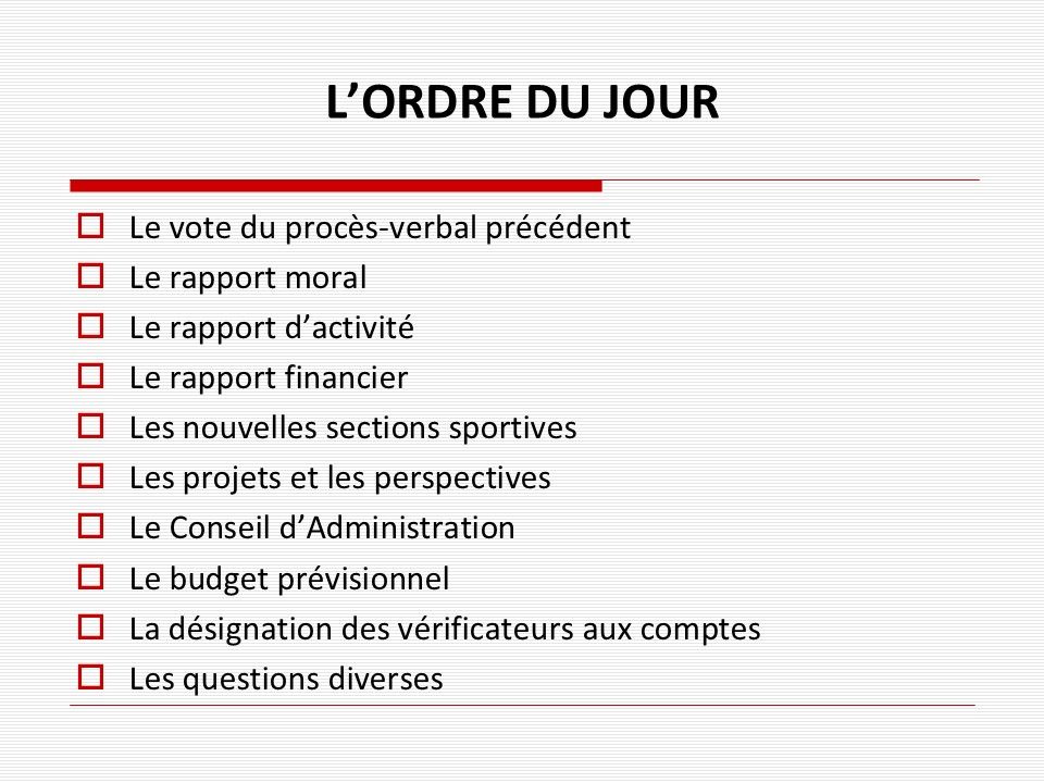 - le vote du procès-verbal précédent