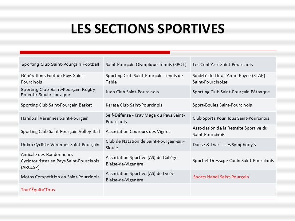 - les nouvelles sections sportives